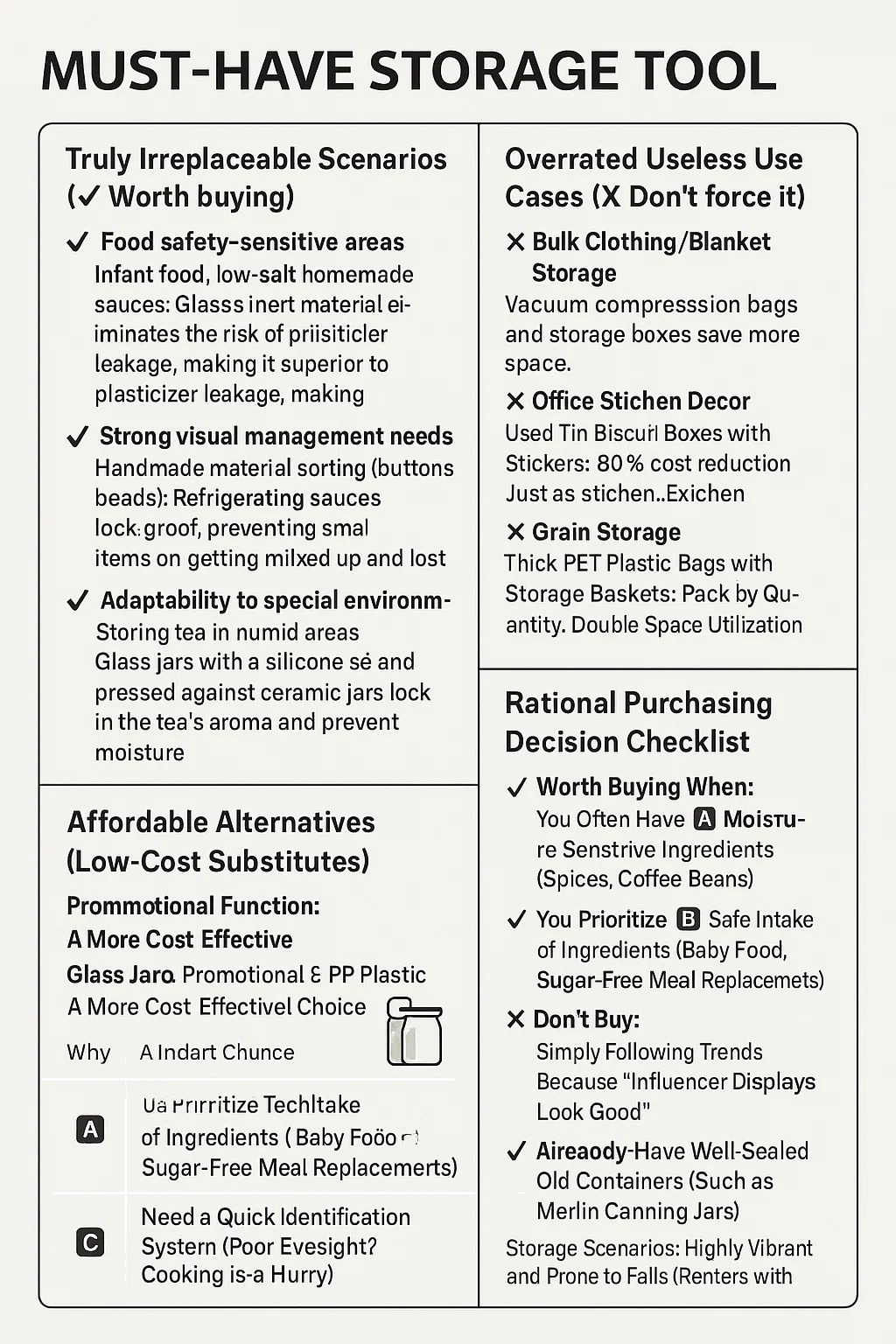以下は、客観的な分析です ガラス貯蔵用の瓶 「必須ストレージツール」です。