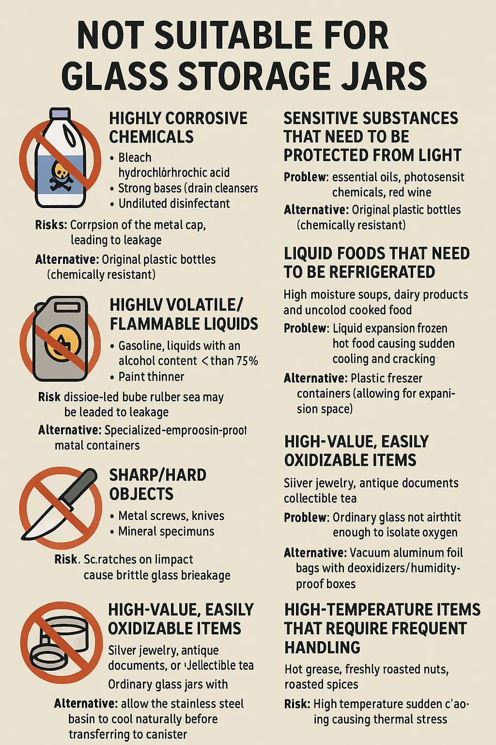 以下は、そのタイプのアイテムです ガラス貯蔵用の瓶 保管には適していません、そしてその理由: